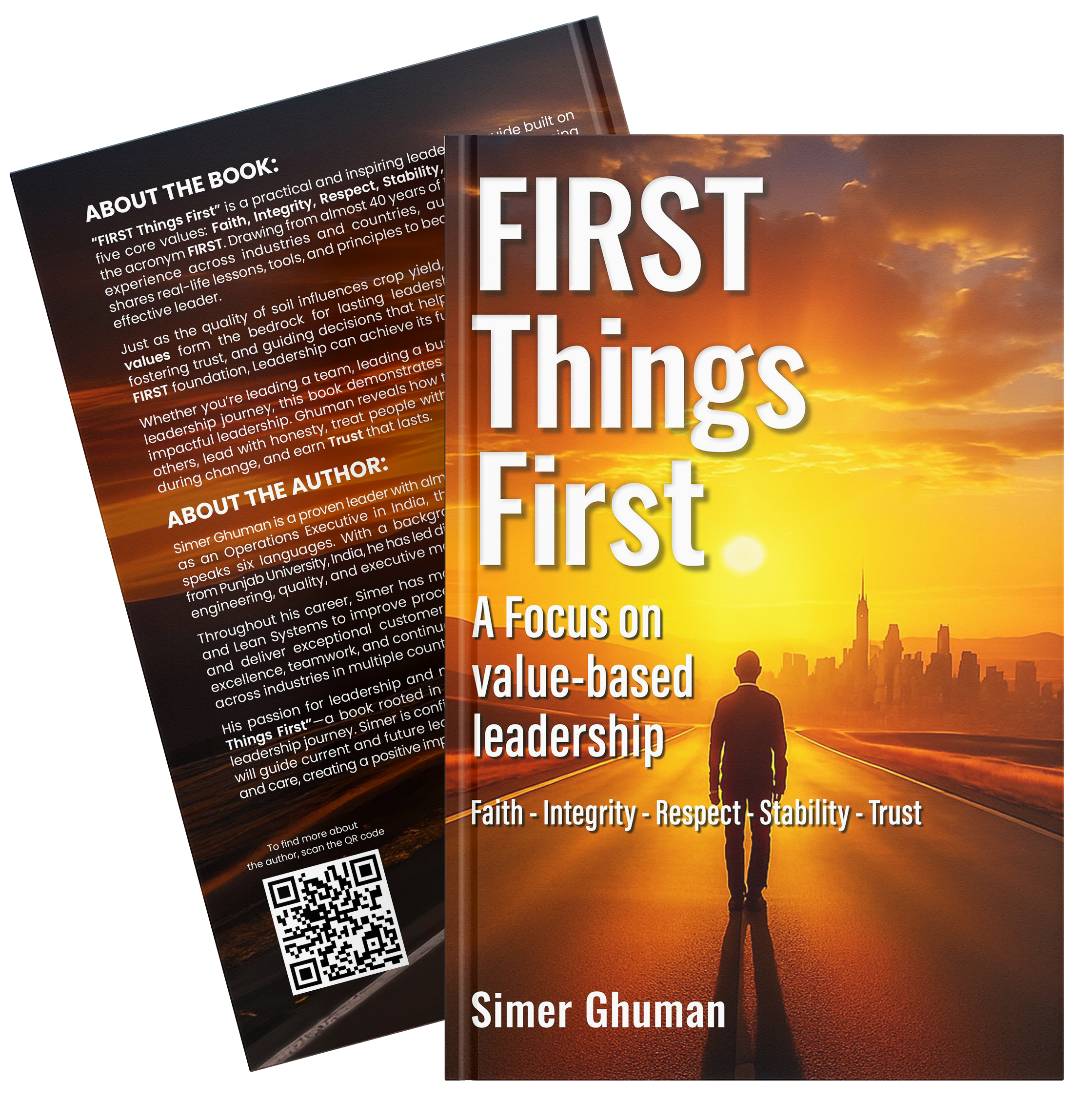 “FIRST Things First” is a practical and inspiring leadership guide built on five core values: Faith, Integrity, Respect, Stability, and Trust—forming the acronym FIRST. Drawing from almost 40 years of hands-on leadership experience across industries and countries, author Simer Ghuman shares real-life lessons, tools, and principles to become a stronger, more effective leader.
